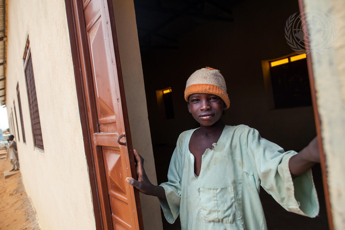 Adam Ali, 10, looks out from one of the two new classrooms built by the African Union – United Nations Mission in Darfur (UNAMID) at the Secondary School for Boys in Um Baro, North Darfur. UNAMID took on the project in March 2013 to give some 700 students a better space to learn, as some of the classrooms in the school had been deteriorating since they were built in 1969. The project was implemented by the civilian police.