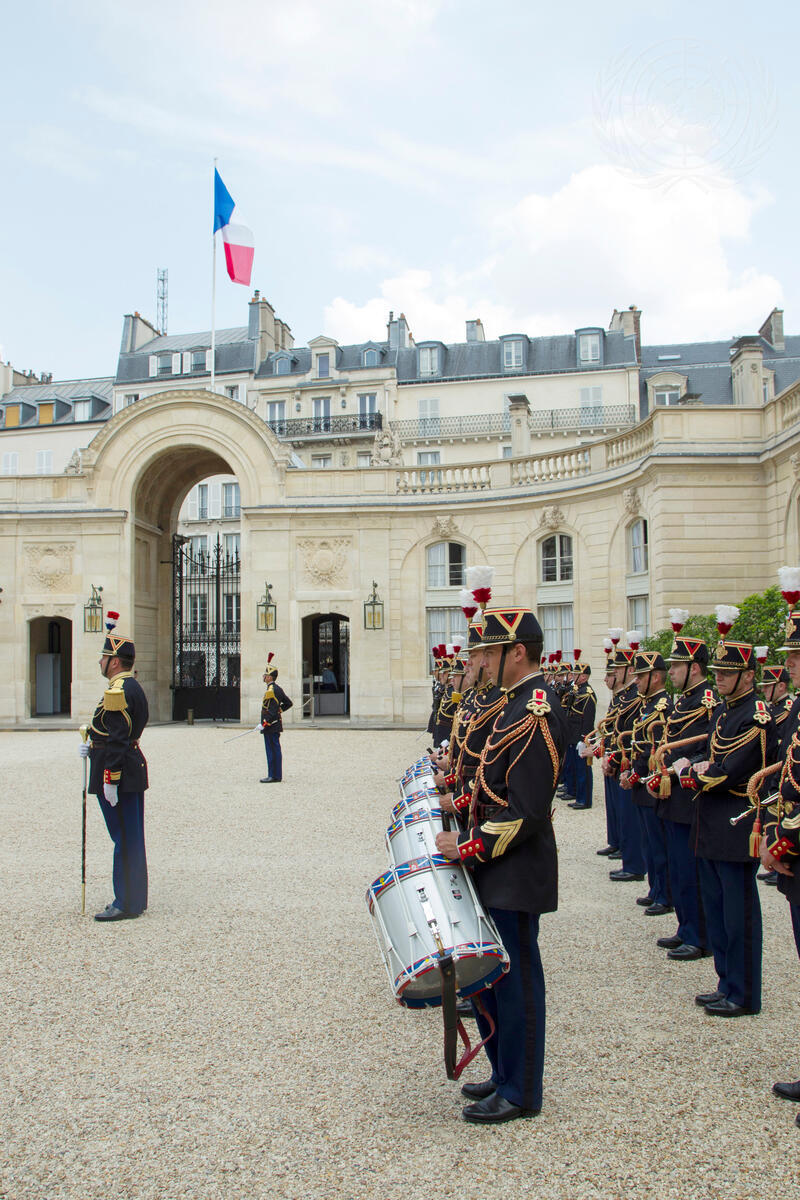 Honour guard at the Elysée Palace, as Secetary-General Ban Ki-moon meets with French President François Hollande.