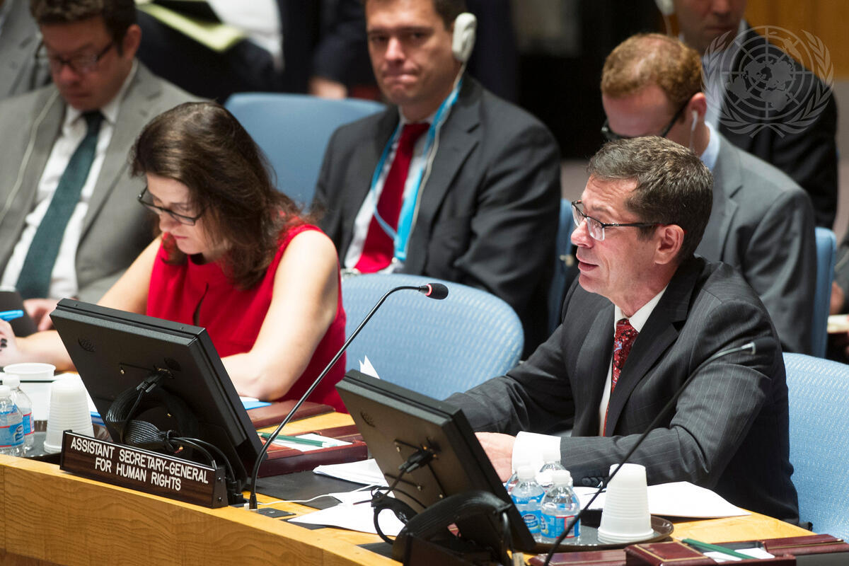 Mr. Šimonovic (right) briefing the Council.