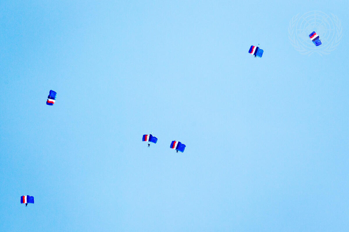 On an official visit to France, Secretary-General Ban Ki-moon attended with French President François Hollande and other dignitaries a military parade celebrating the French national holiday, Bastille Day.