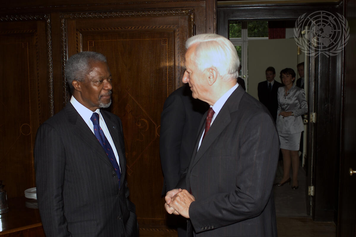 Mr. Annan (left) meets with former Federal President Richard von Weizsacker, in Berlin.