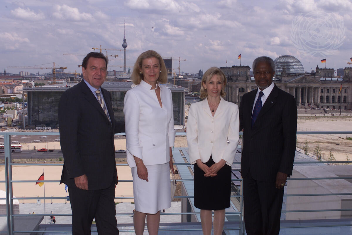 From left to right: German Chancellor Gerhard Schroeder, Mrs. Nane Annan, Mrs. Doris Schroeder and Mr. Annan at the Federal Chancellery in Berlin.