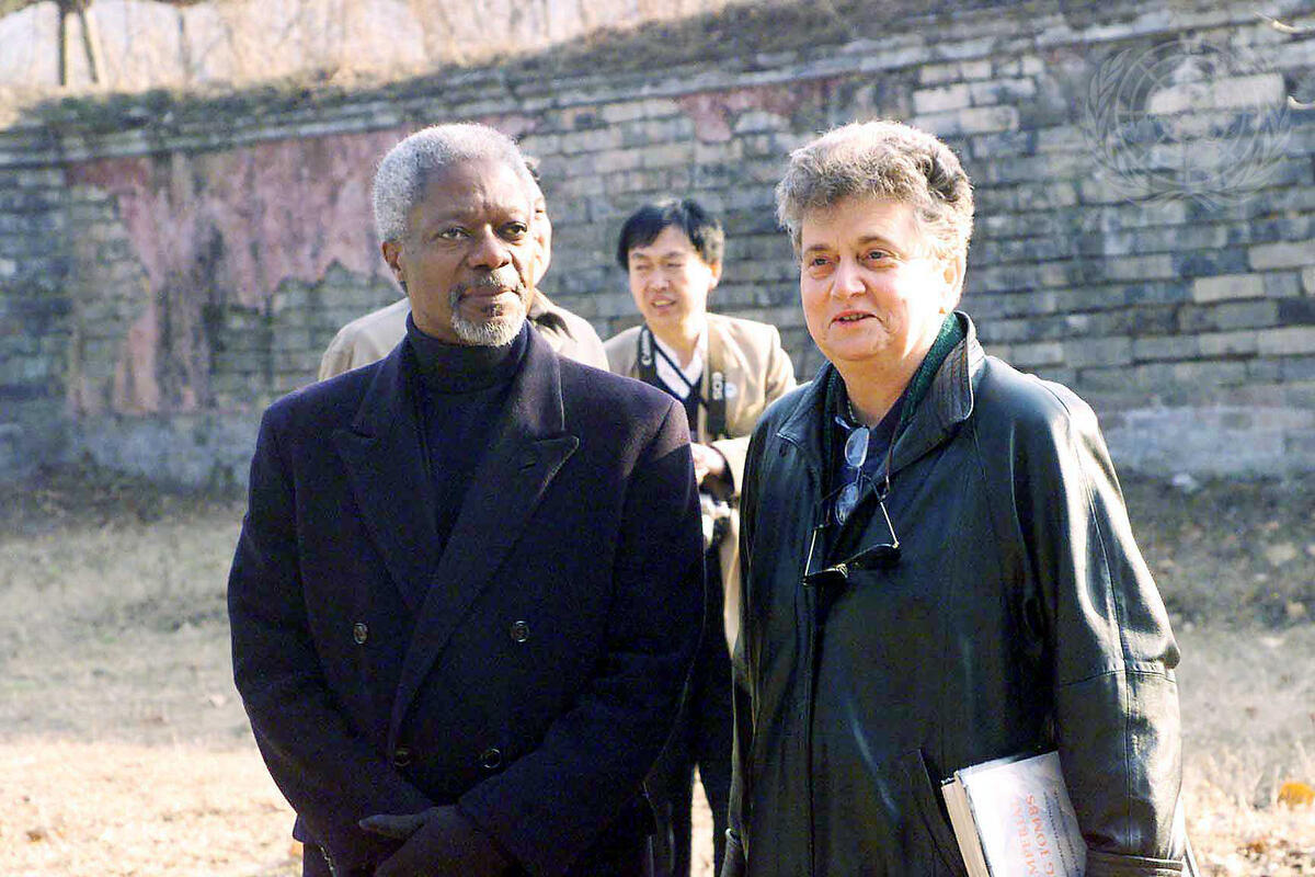 Secretary-General Kofi Annan (left) meets with Kerstin Leitner, Resident Representative of United Nations Development Programme (UNDP), while on official visit to the People's Republic of China.