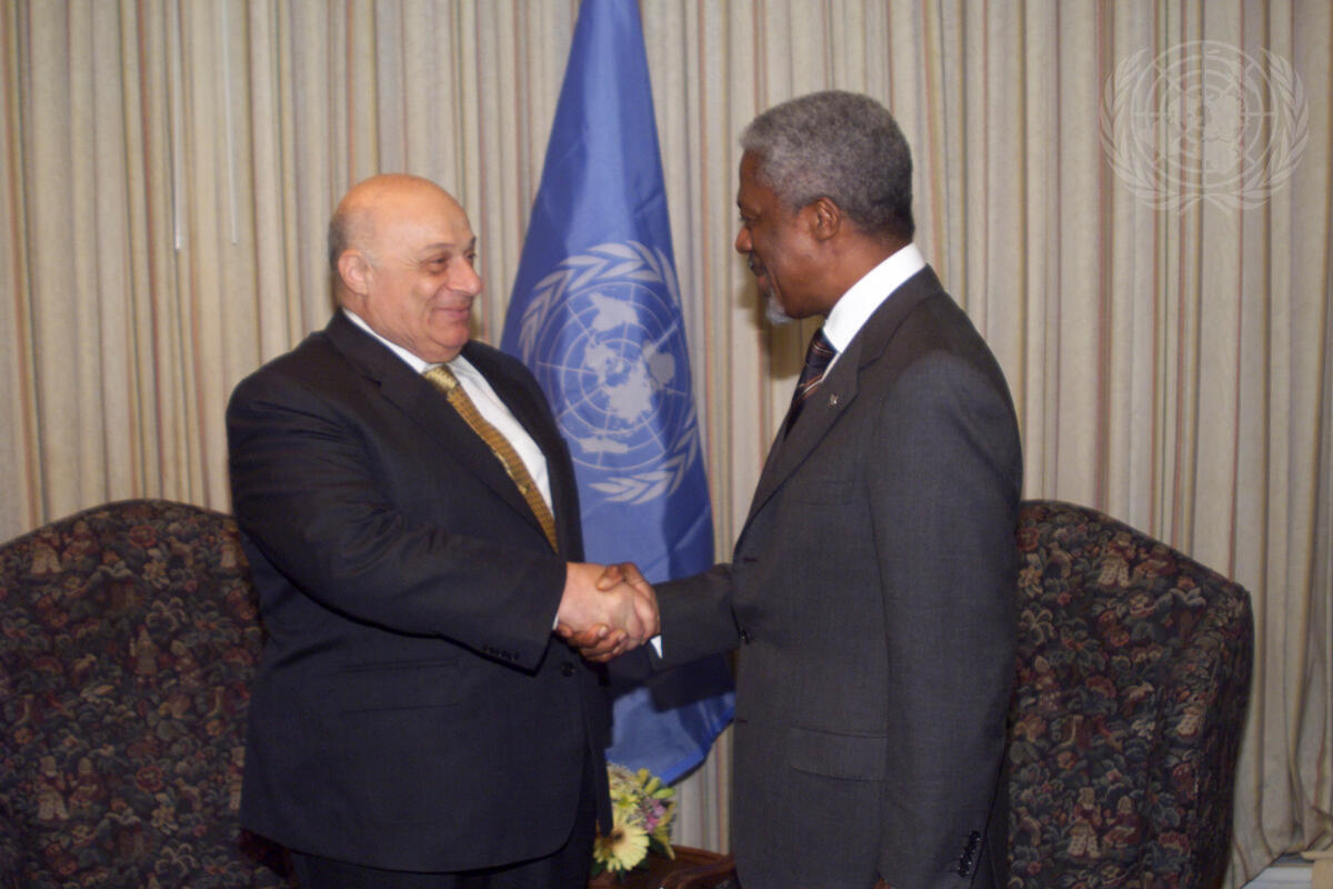 Secretary-General Kofi Annan with Raouf Denktash, leader of the Turkish Cypriot community, at the Conrad Hotel in Istanbul.