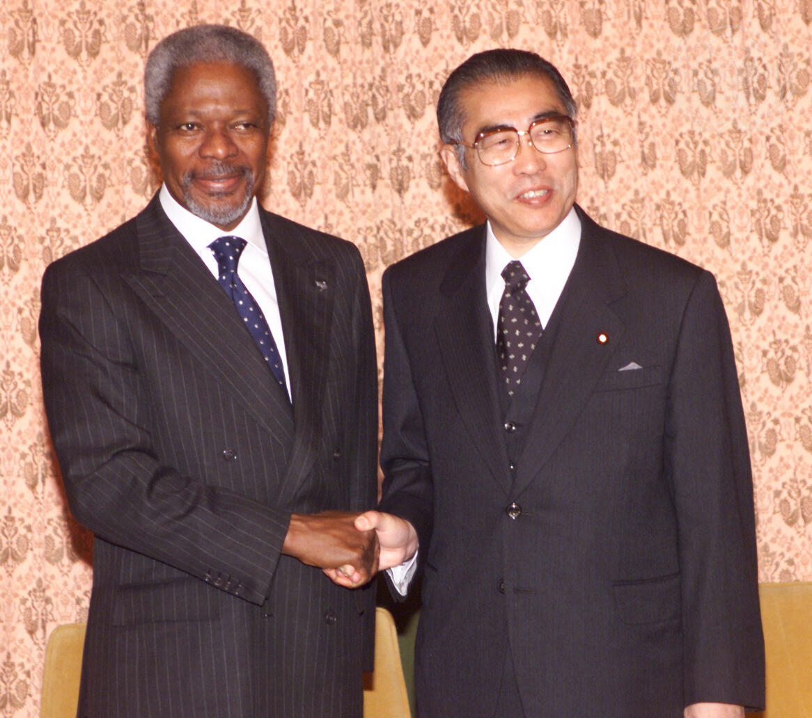 Secretary-General Kofi Annan (left) with Prime Minister Keizo Obuchi of Japan, at the official residence of the Prime Minister in Tokyo.