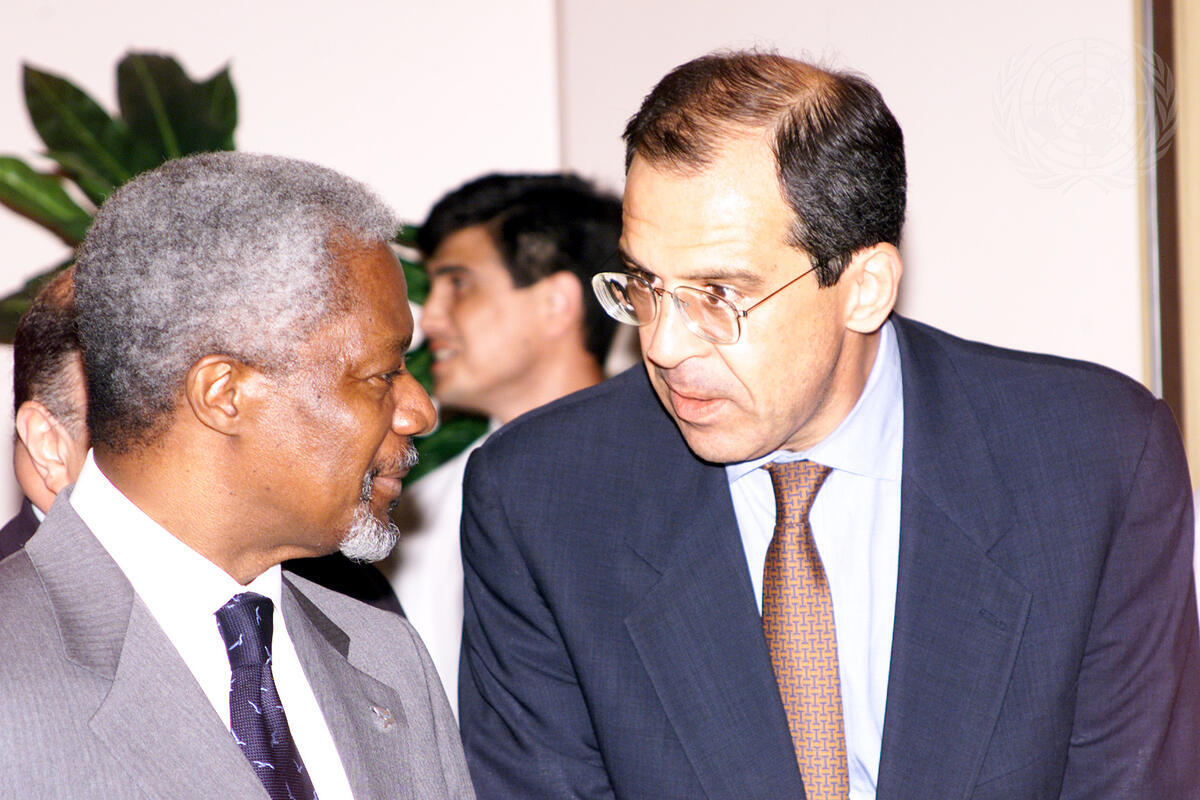 Secretary-General Kofi Annan with Sergey V. Lavrov (right), the Permanent Representative of the Russian Federation to the United Nations.