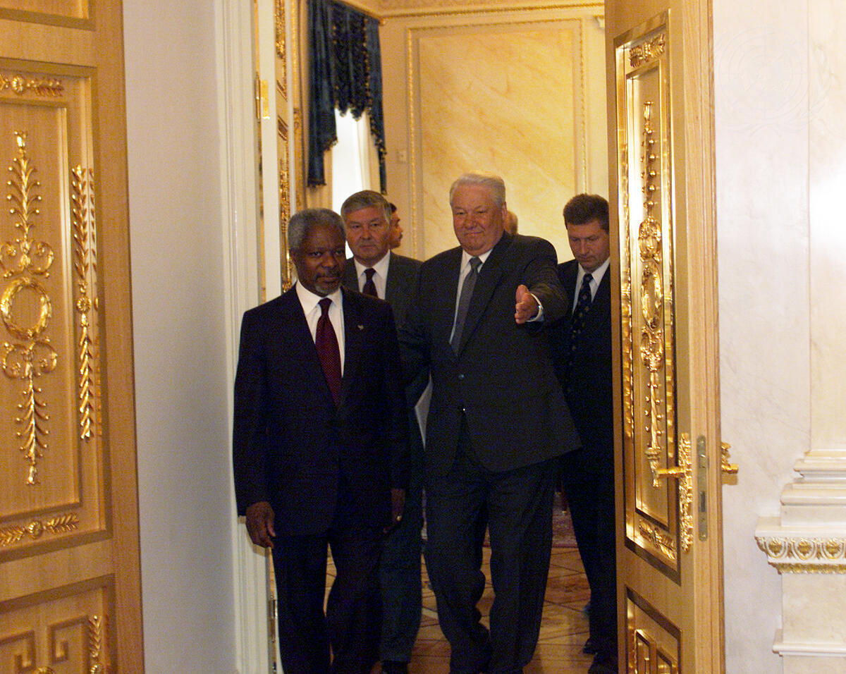 Secretary-General Kofi Annan (left) with Boris Yeltsin, President of the Russian Federation.