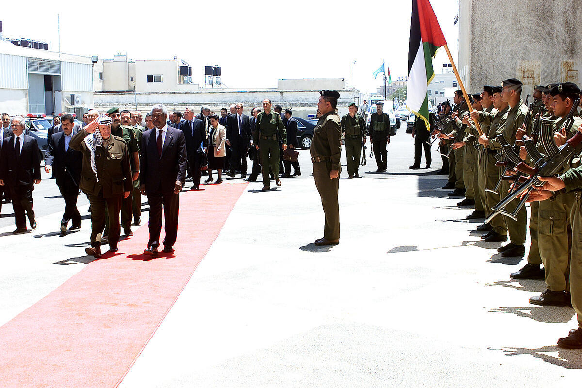 Secretary-General Kofi Annan meeting with Yasser Arafat, President of the Palestinian National Authority.