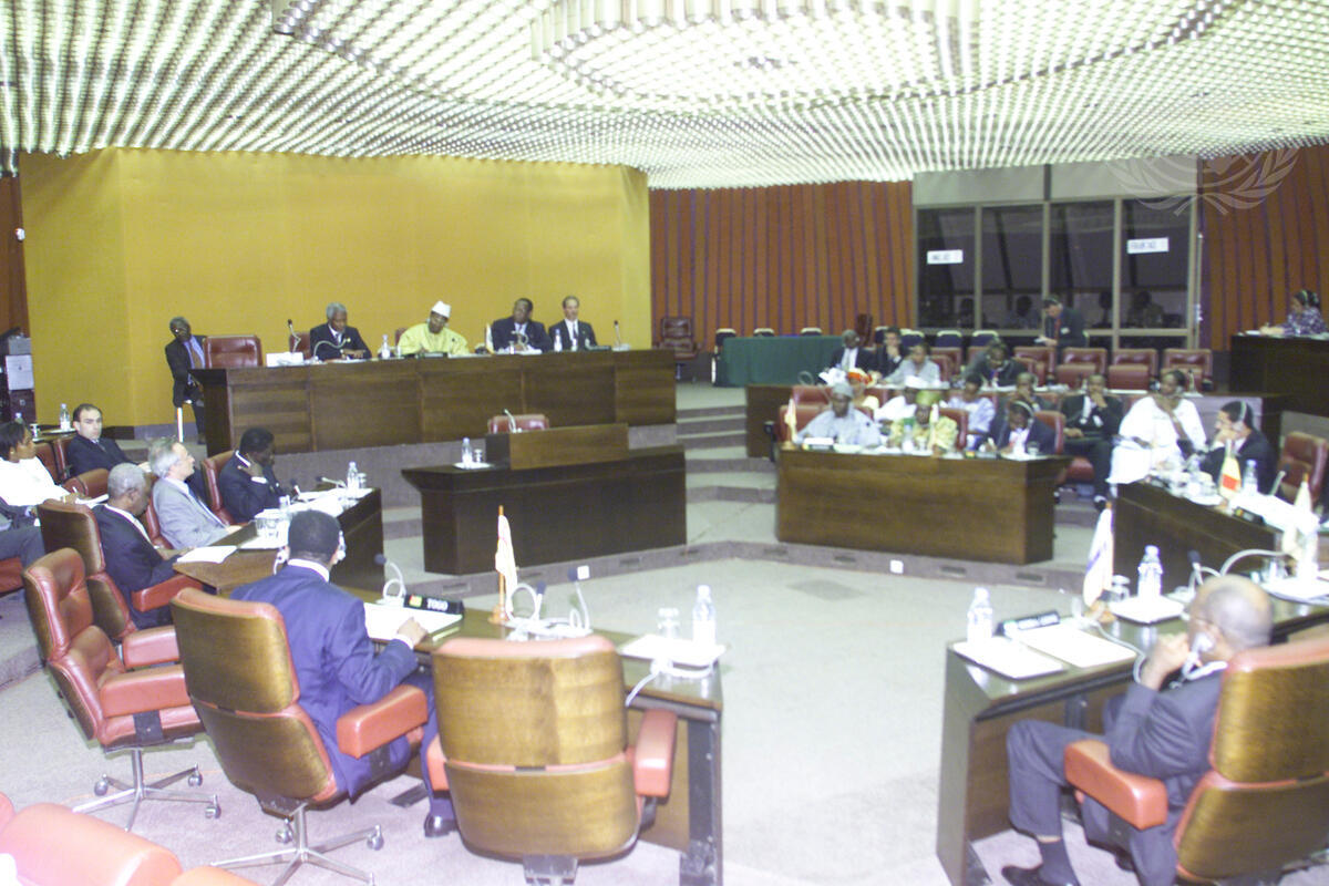 Secretary-General Kofi Annan at a Summit Meeting with ECOWAS Coordinating Committee on Sierra Leone. Left to right, is Secretary-General Kofi Annan; M. Alpha Oumar Konare, President of Mali; and Executive Secretary of ECOWAS.