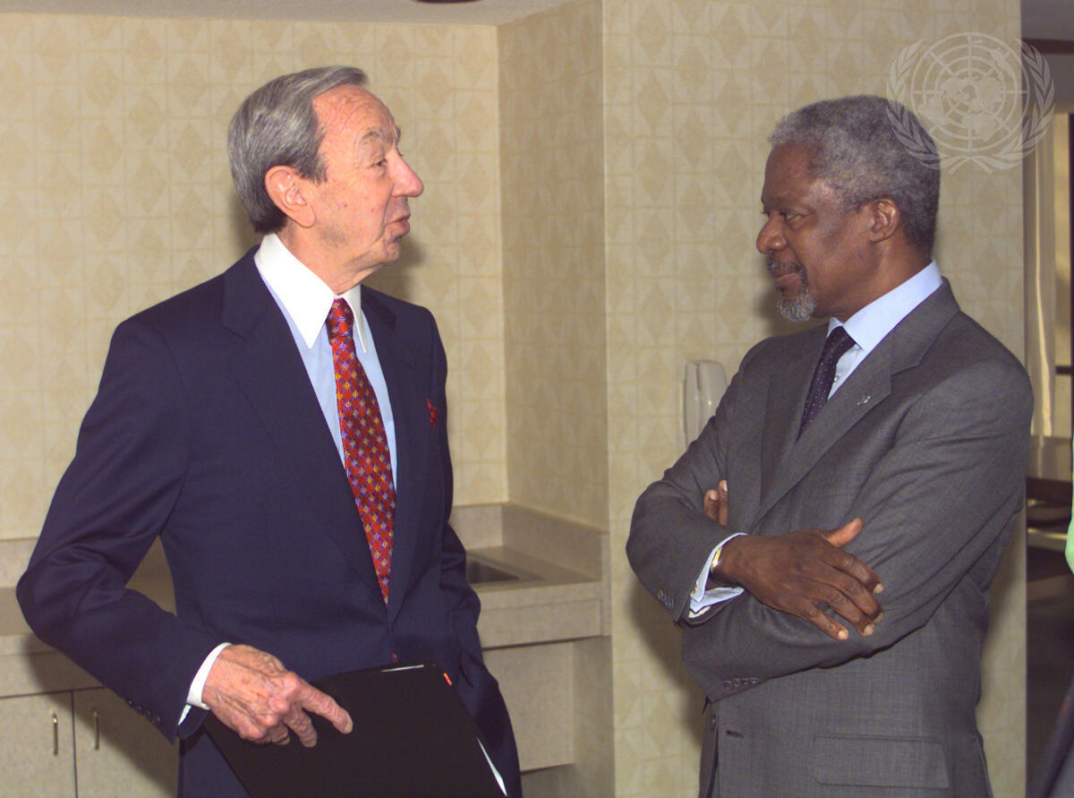 Secretary-General Kofi Annan (right) meets former US Secretary of State Warren Christopher, at the Bonaventure Hotel.