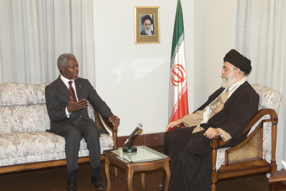 Mr. Annan (left) meets with Ayatollah Ali Khamenei, Supreme Leader of the Islamic Republic of Iran.