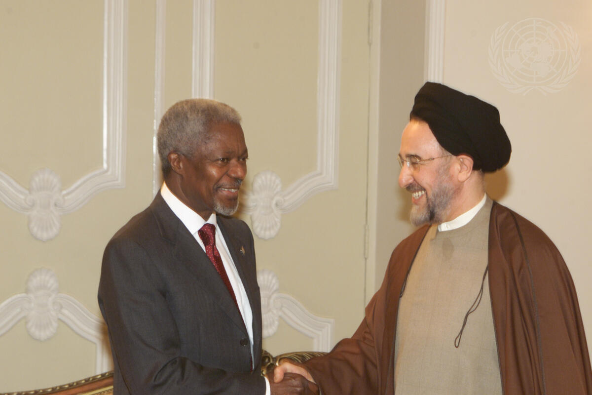 Mr. Annan (left) meets with Seyed Mohammad Khatami, President of the Islamic Republic of Iran.