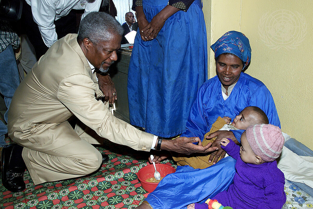Secretary-General Kofi Annan and Mrs. Nane Annan visited the Ethiopian Gemini Project which is supported by the World Food Programme. The Gemini Trust was founded by Dr. Carmela Abate in 1983 and it is a support Charity for twins born to needy families in Addis Ababa. It provides health care, supplementary feeding, counseling, material aid and emergency social funds in times of crisis.