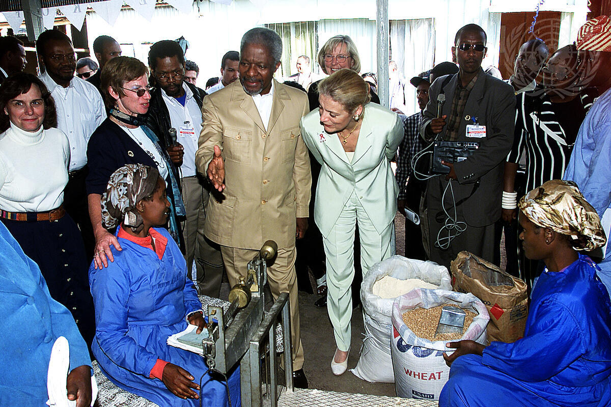 Secretary-General Kofi Annan and Mrs. Nane Annan visited the Ethiopian Gemini Project which is supported by the World Food Programme. The Gemini Trust was founded by Dr. Carmela Abate in 1983 and it is a support Charity for twins born to needy families in Addis Ababa. It provides health care, supplementary feeding, counseling, material aid and emergency social funds in times of crisis.