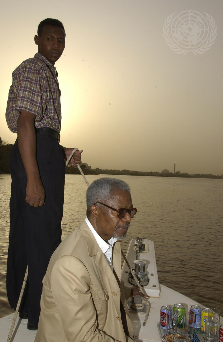 Secretary-General Kofi Annan (seated) visits Khartoum, Sudan.