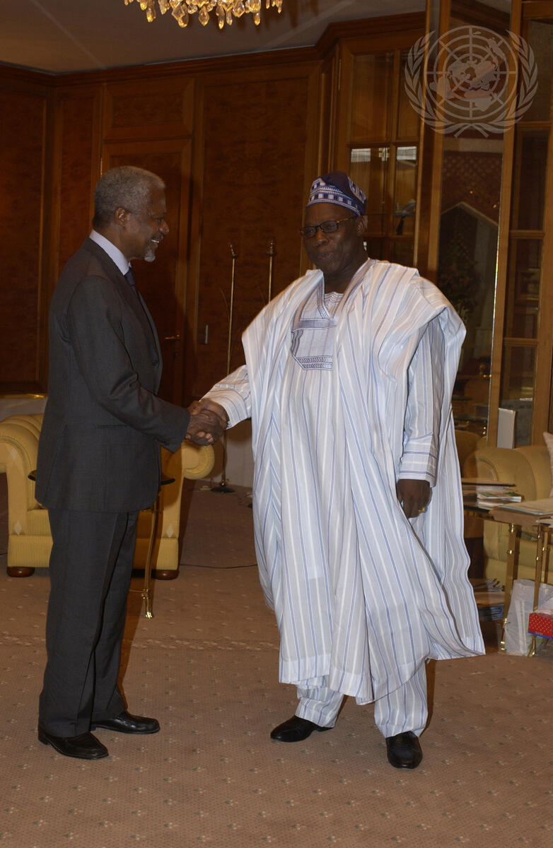 Secretary-General Kofi Annan (left) meeting with President Olusegun Obasanjo of Nigeria, at the Presidential Palace.