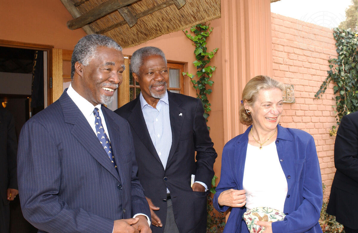 Secretary-General Kofi Annan (centre) and Mrs. Nane Annan, meeting with Thabo Mbeki, President of South Africa.