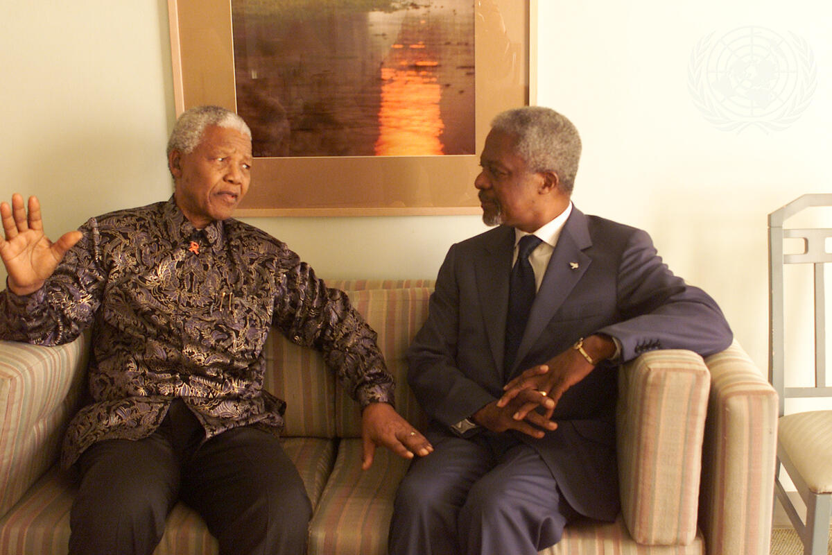 Secretary-General Kofi Annan (right) meeting with former President of South Africa Nelson Mandela in Lusaka.