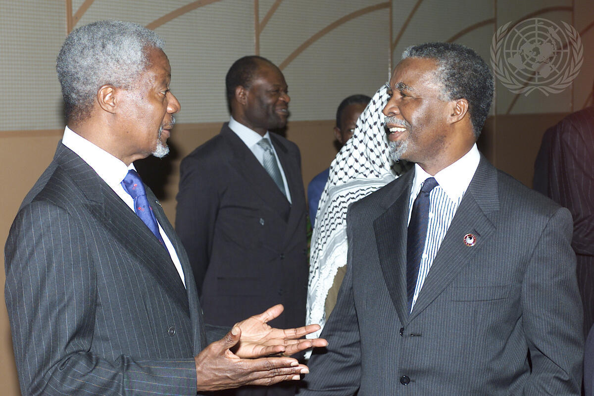 Secretary-General Kofi Annan with President of South Africa, Thabo Mbeki, before the start of the World Conference against Racism, Racial Discrimination, Xenophobia and Related Intolerances.