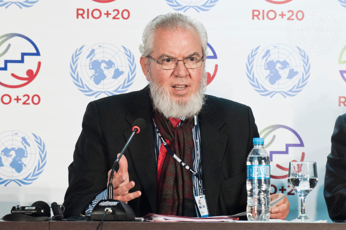 Juan Somavia, Director-General of the International Labour Organization (ILO), briefs the press in Rio.