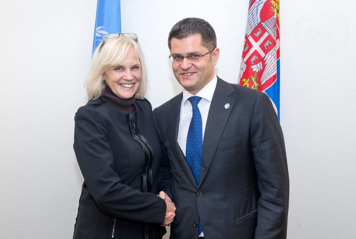 Caption Description Vuk Jeremic (right), President of the sixty-seventh session of the General Assembly, meets with Terry Baugh, President and Co-Founder of Kidsave.
