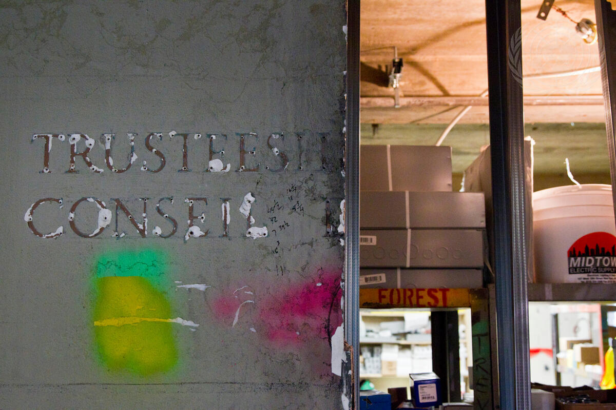 During the renovations, a view of the sign marking the entrance to the Trusteeship Council Chamber.