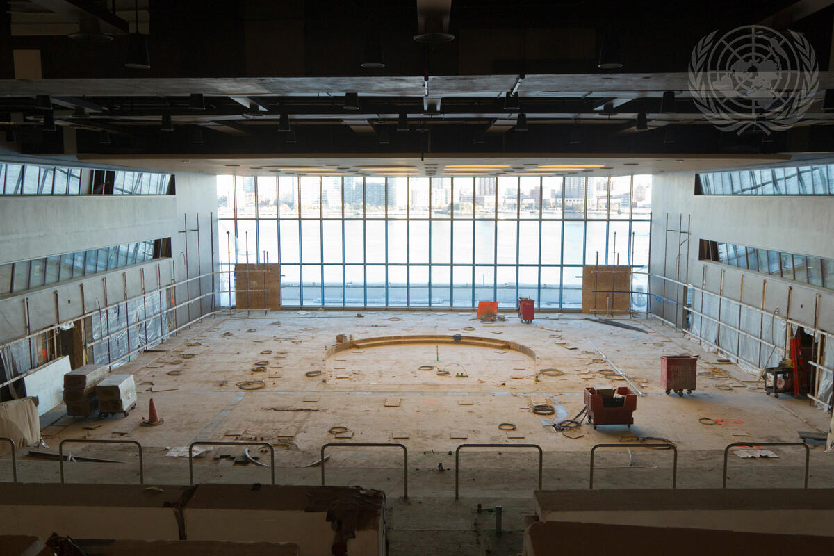 A wide view of the Economic and Social Council (ECOSOC) Chamber during UN Headquarters' renovation under the Capital Master Plan (CMP).