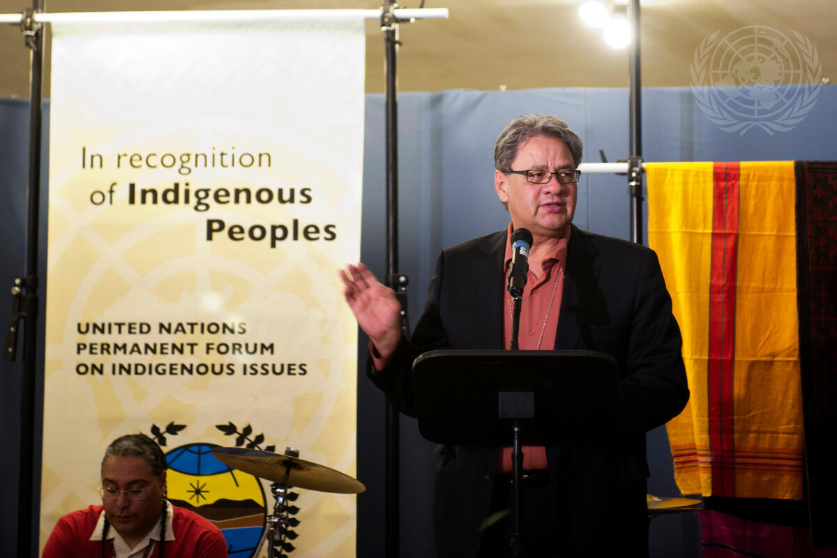 Edward John, Grand Chief of Canada’s Tl'azt'en Nation and Chair of the eleventh session of the UN Permanent Forum on Indigenous Issues (UNPFII), speaks at the opening reception for the exhibit, “Indigenous Peoples and Food Sovereignty”. The exhibit is organized as part of UNPFII’s eleventh session, which kicked off this week.