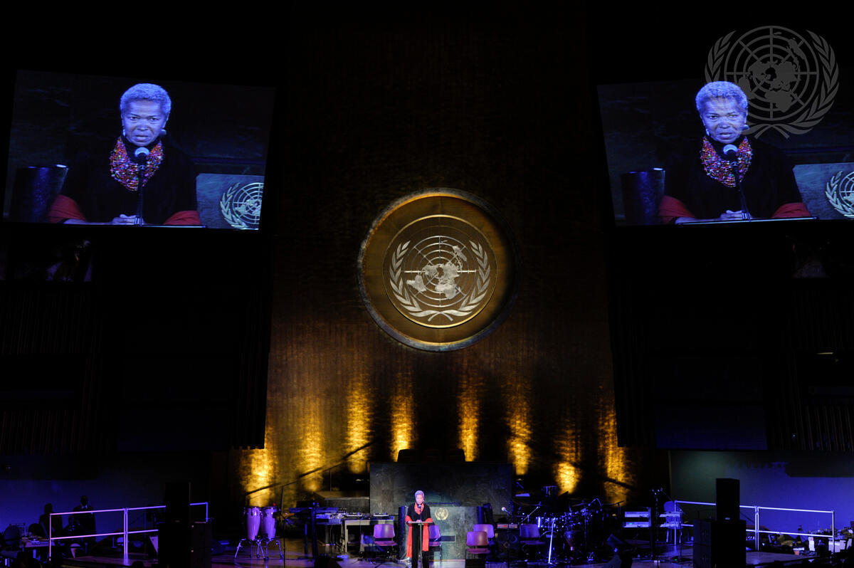 Sheila Walker, Executive Director of Afrodiaspora, speaks at the UN’s 2012 gala concert to raise awareness on the legacy of slavery and the transatlantic slave trade. This year’s concert also helps to rally support and funds for a Permanent Memorial at the UN honouring the victims of slavery.