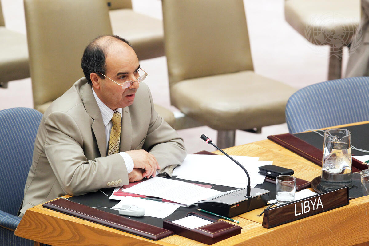 Ibrahim O. A. Dabbashi, Deputy Permanent Representative of Libya to the UN, addresses a meeting of the Council on his country, at which Members were briefed by International Criminal Court (ICC) Prosecutor Luis Moreno-Ocampo. Mr. Moreno-Ocampo updated the Council on the Court’s case against two perpetrators of serious crimes in Libya, Saif al-Islam Qadhafi, the son of former leader Muammar al-Qadhafi, and former Libyan intelligence chief Abdullah al-Senussi.