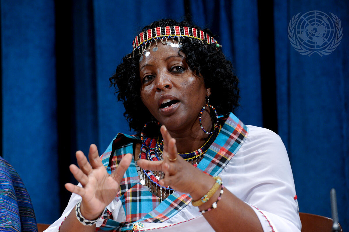 Agnes Leina, Executive Director of Il’laramak Community Concerns (Kenya), speaks on the issue of violence against indigenous women and girls, during a press conference held as part of this week’s eleventh session of the UN Permanent Forum on Indigenous Issues (UNPFII).