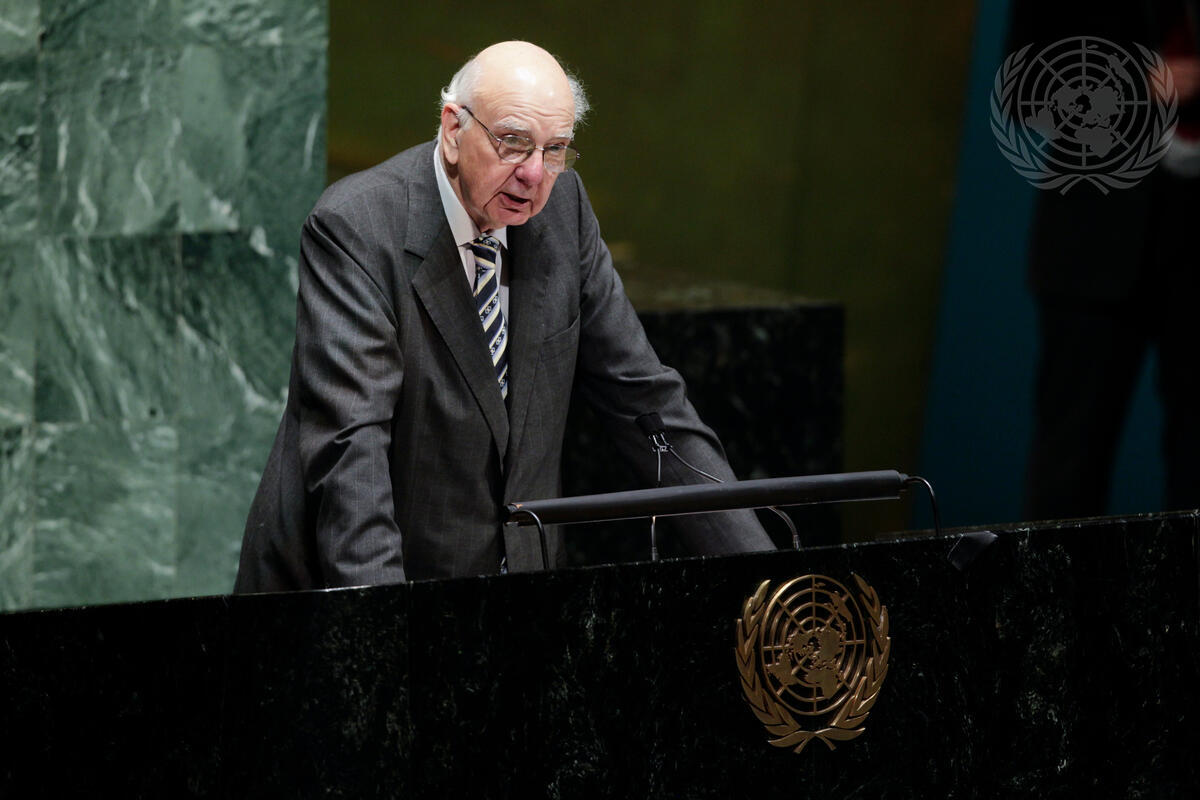 Paul Volcker, renowned American economist and former Chairman of the United States Federal Reserve, addresses the General Assembly’s debate on “State of the world economy and finance in 2012”. The high-level debate was convened by the President of the Assembly, Nassir Abdulaziz Al-Nassser, and Secretary-General Ban Ki-moon.