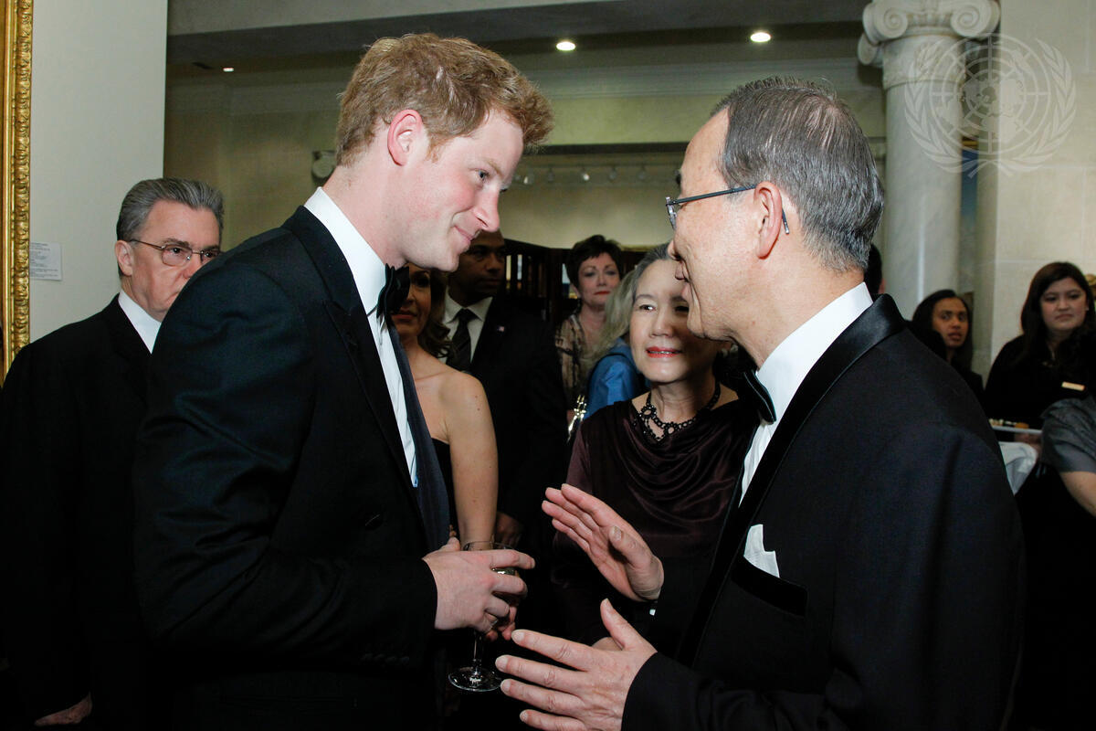 Secretary-General Ban Ki-moon (right) speaks with the United Kingdom’s Prince Harry at the annual Atlantic Council Awards Dinner in Washington, D.C., where they were respectively honoured for Distinguished International Leadership and Distinguished Humanitarian Leadership.