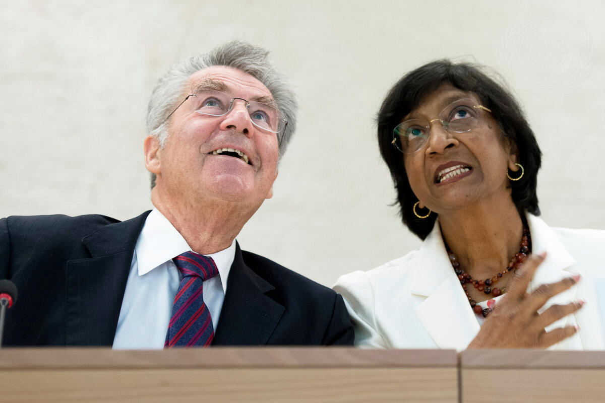 President Fischer (left) with UN High Commissioner for Human Rights Navi Pillay at the Human Rights Council meeting.
