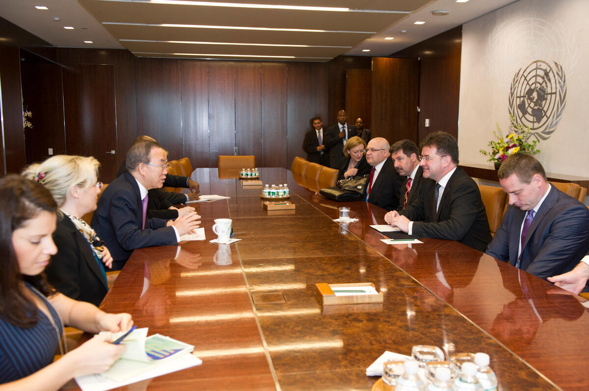 Secretary-General Ban Ki-moon (third from left) meets with Miroslav Lajcák (seated across the table), Deputy Prime Minister and Minister for Foreign and European Affairs of the Slovak Republic.