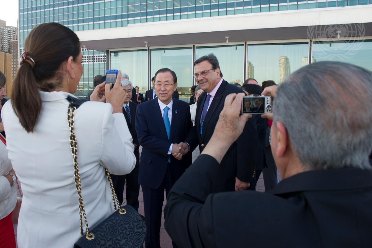People taking pictures of the Secretary-General Ban Ki-moon (left) and Dr. Jacques Rogge (right), President of the International Olympic Committee