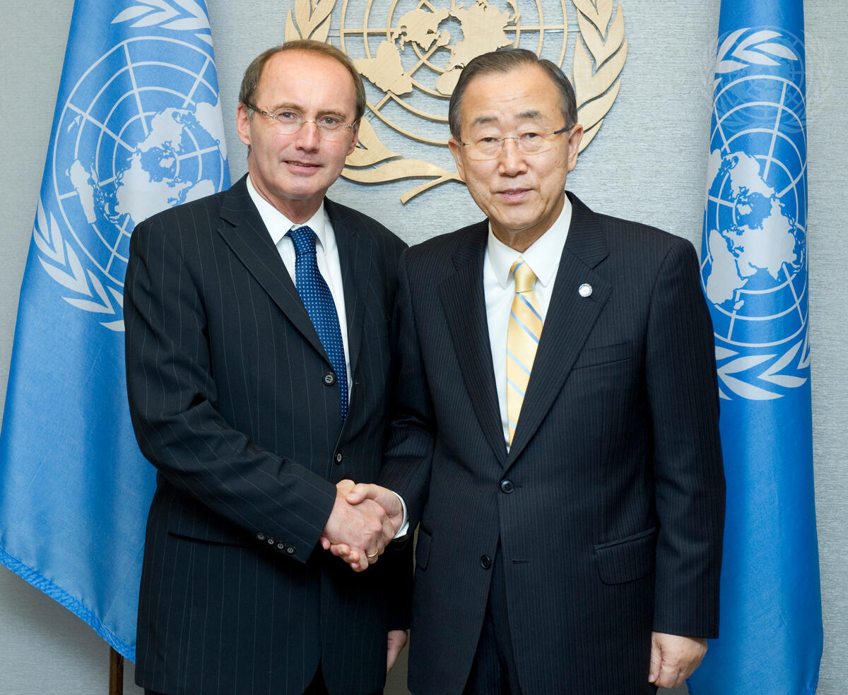 Secretary-General Ban Ki-moon (right) meets with Othmar Karas, Vice-President of the European Parliament.