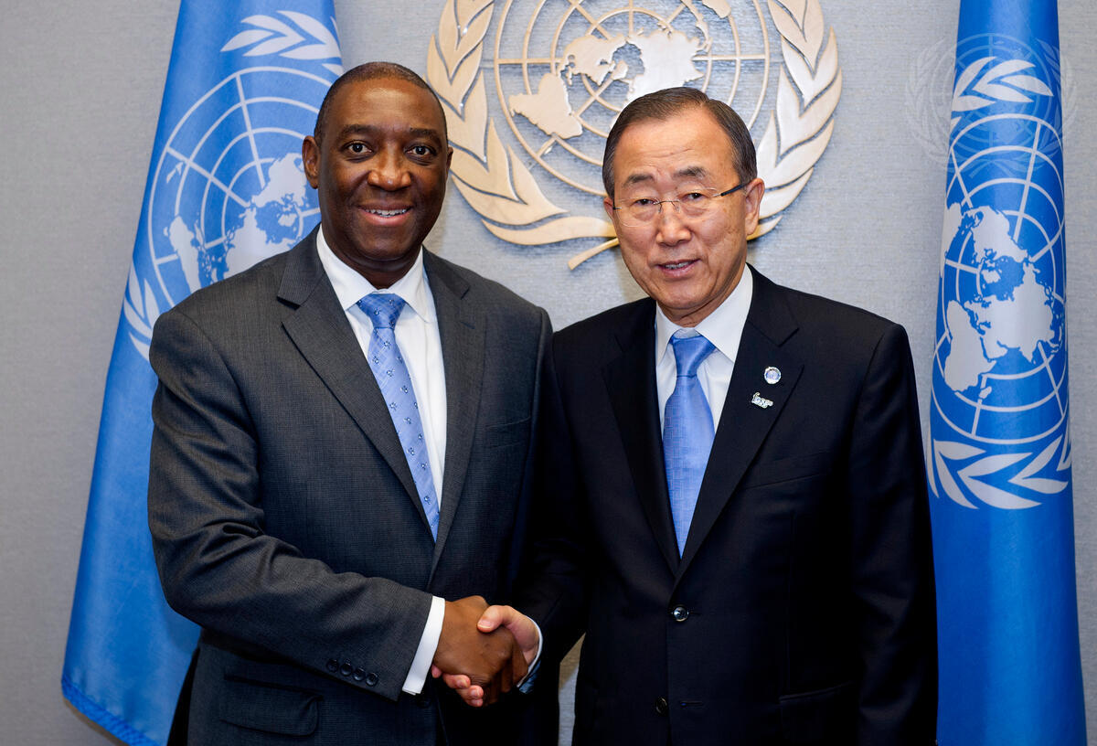 Secretary-General Ban Ki-moon (right) meets with Oldemiro Marques Balói, Minister for Foreign Affairs and Cooperation of the Republic of Mozambique.