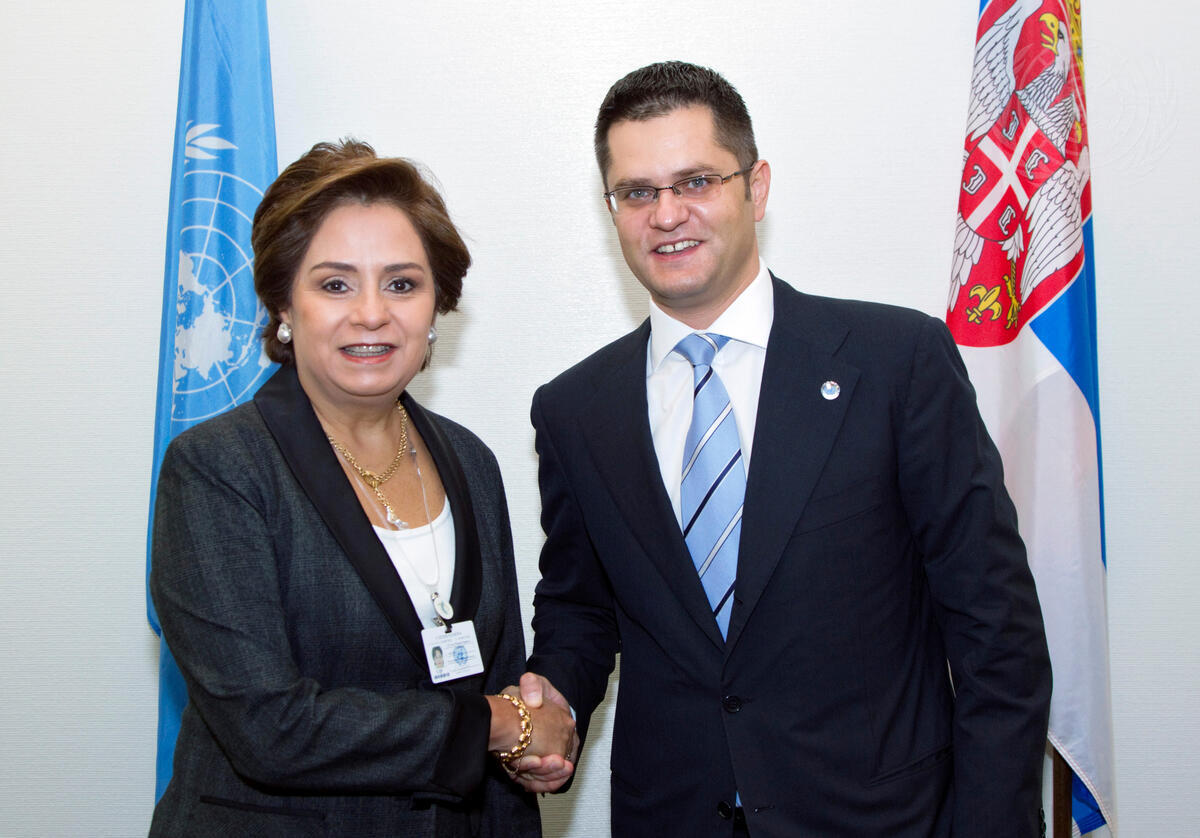 Vuk Jeremic (right), President of the sixty-seventh session of the General Assembly, meets with Patricia Espinosa Cantellano, Minister for Foreign Affairs of Mexico.