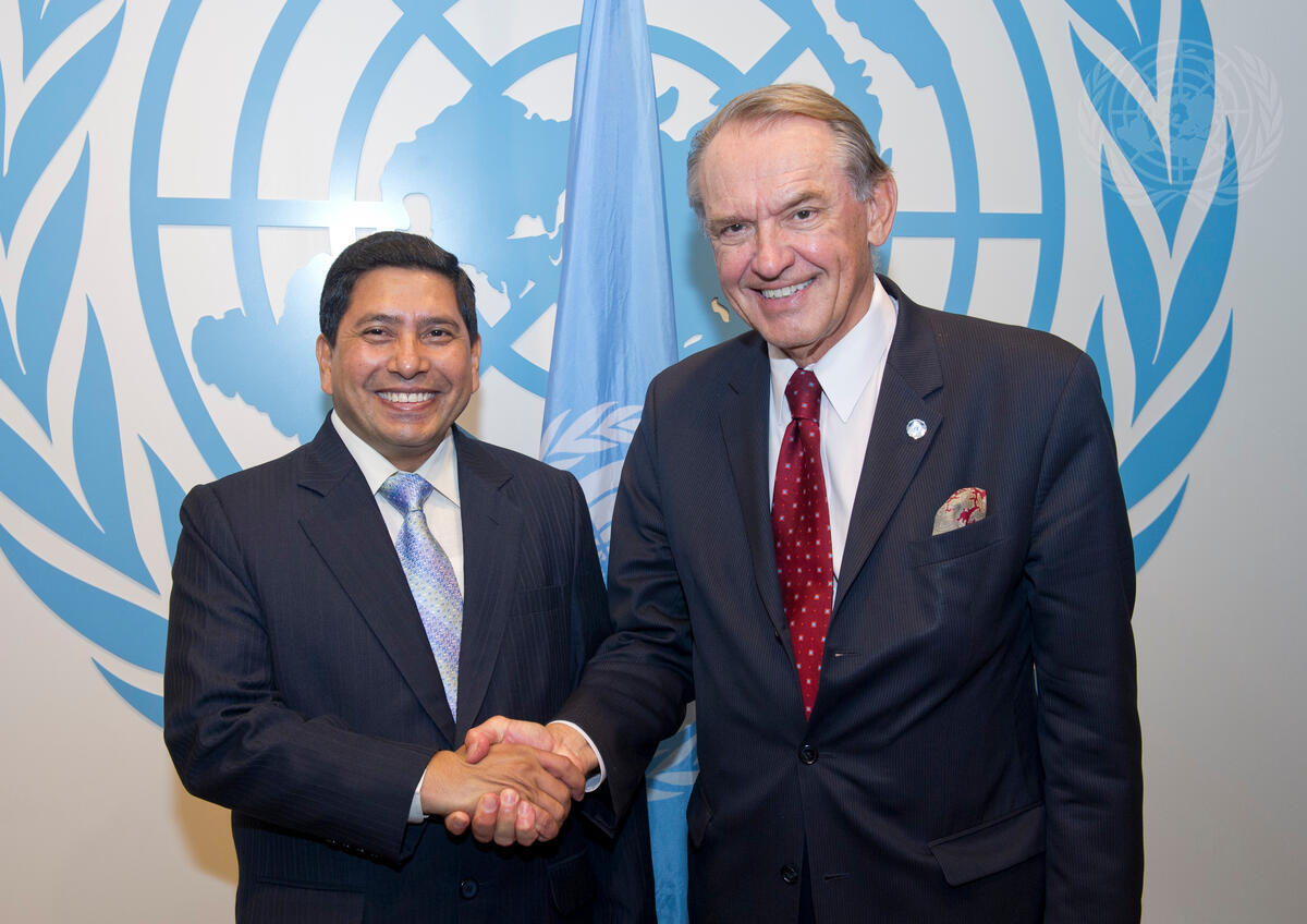 Deputy Secretary-General Jan Eliasson meets with Narayan Kaji Shrestha 'Prakash', Deputy Prime Minister and Minister for Foreign Affairs of the Federal Democratic Republic of Nepal.