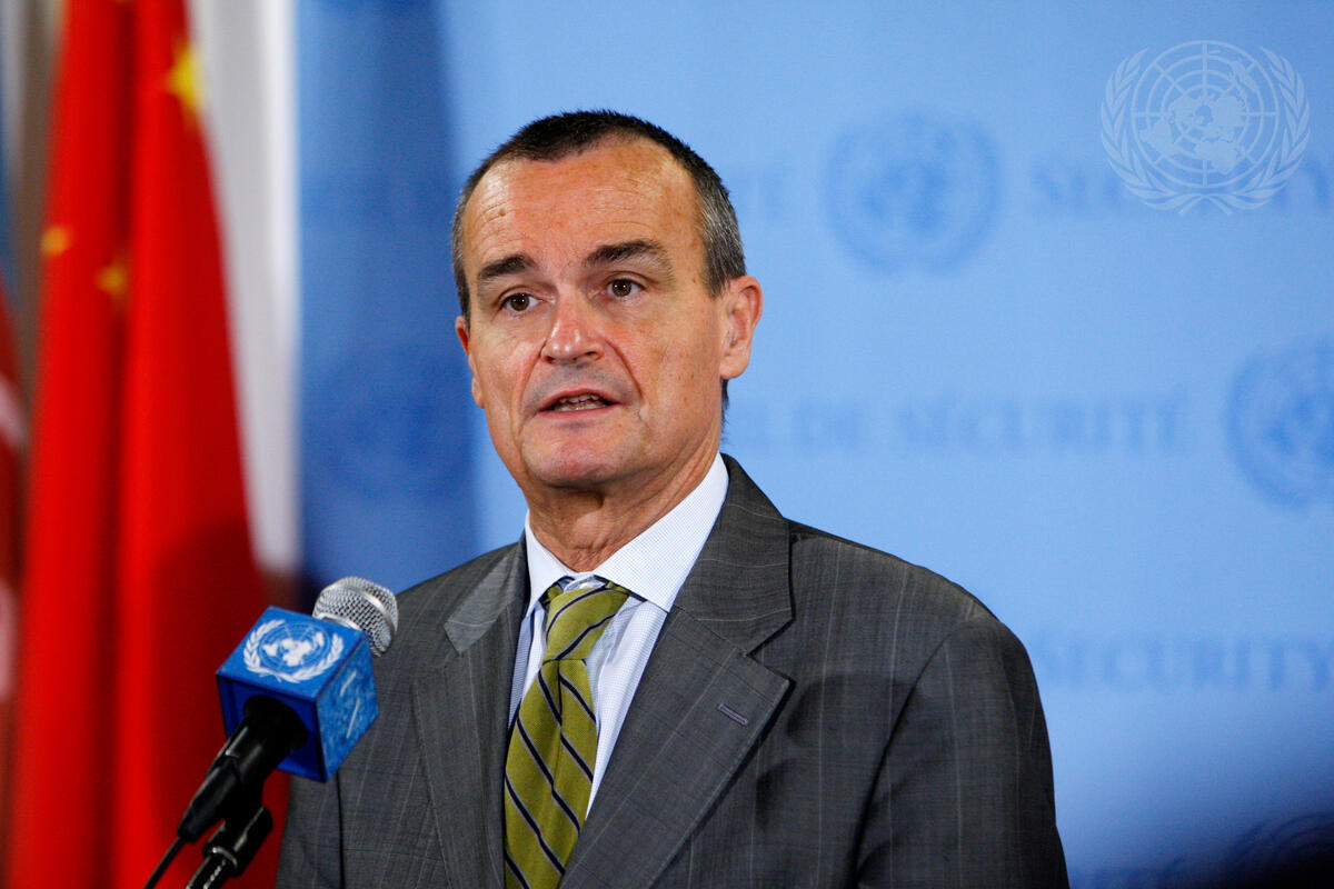 Gérard Araud, Permanent Representative of France to the UN, speaks to the press, following the Security Council vote which failed to adopt a draft resolution on the situation in Syria.