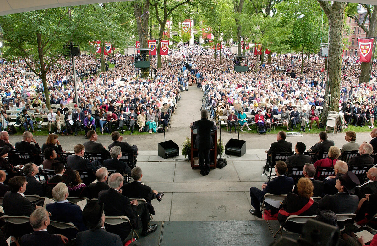 A view of the gathering as Secretary-General Kofi Annan delivers the commencement address at Harvard University in Cambridge, Massachusetts,