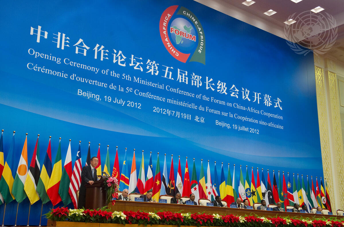 Secretary-General Ban Ki-moon (at lectern, left) addresses the opening session of the 5th Ministerial Conference of the Forum on China-Africa Cooperation in Beijing.