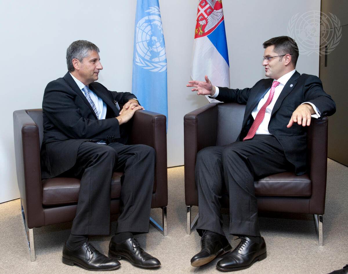 Vuk Jeremic (right), President of the the sixty-seventh session of the General Assembly, meets with Michael Spindelegger, Minister for Foreign Affairs of Austria.