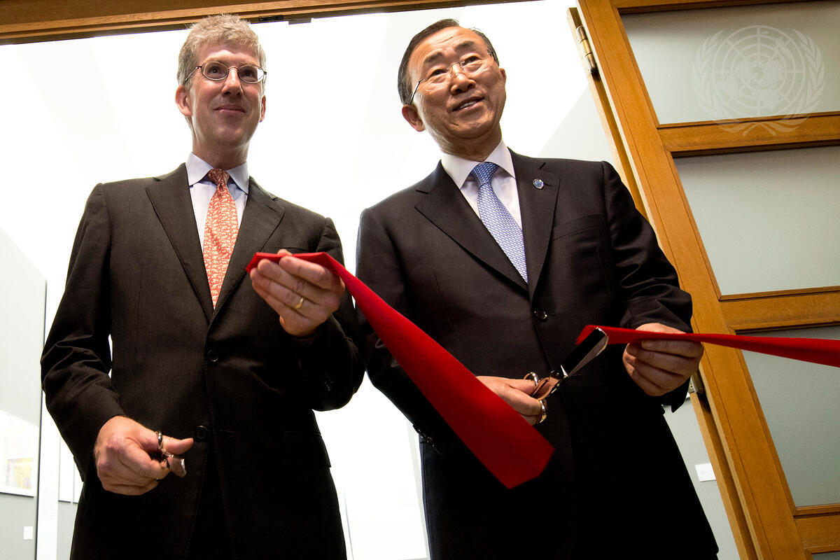 The UN inaugurated the John D. Rockefeller, Jr. Reading Room at the League of Nations Archives of the UN Office at Geneva (UNOG) Library. The event marked the 85th anniversary of the donation by John D. Rockefeller, Jr. to endow the League of Nations Library, which became the UN Library at Geneva in 1946. In conjunction with the dedication of the Rockefeller Reading Room, Secretary-General Ban Ki-moon (right) and Michael Rockefeller, great-grandson of John D. Rockefeller, Jr., inaugurated an exhibit on international philanthropy in the League of Nations Museum at the UNOG Library.
