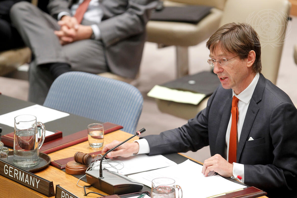 Peter Wittig, Permanent Representative of Germany to the UN and President of the Security Council for the month of September, chairs the Council’s meeting on Sierra Leone.