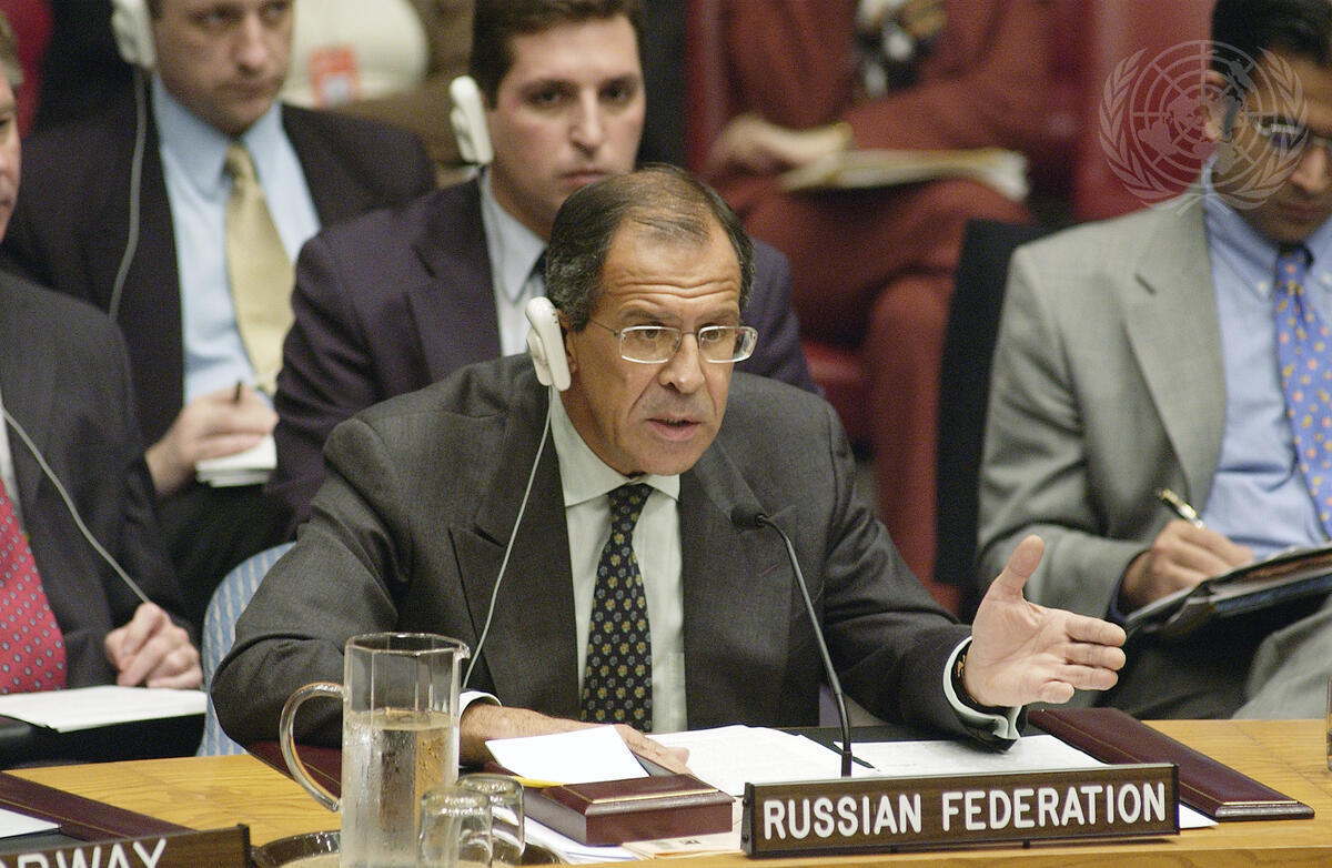 Sergey Lavrov, Permanent Representative of the Russian Federation to the United Nations, addresses the Security Council during the open debate on Iraq.