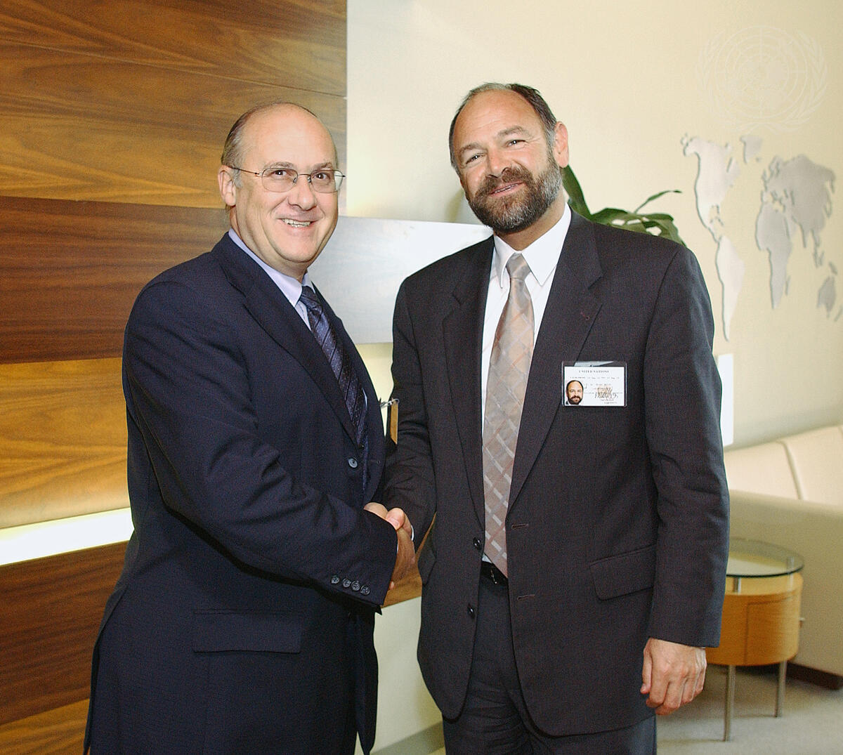 Jan Kavan (left), President of the fifty-seventh session of the General Assembly, meets with Ernst Walch, Minister for Foreign Affairs of the Principality of Liechtenstein.