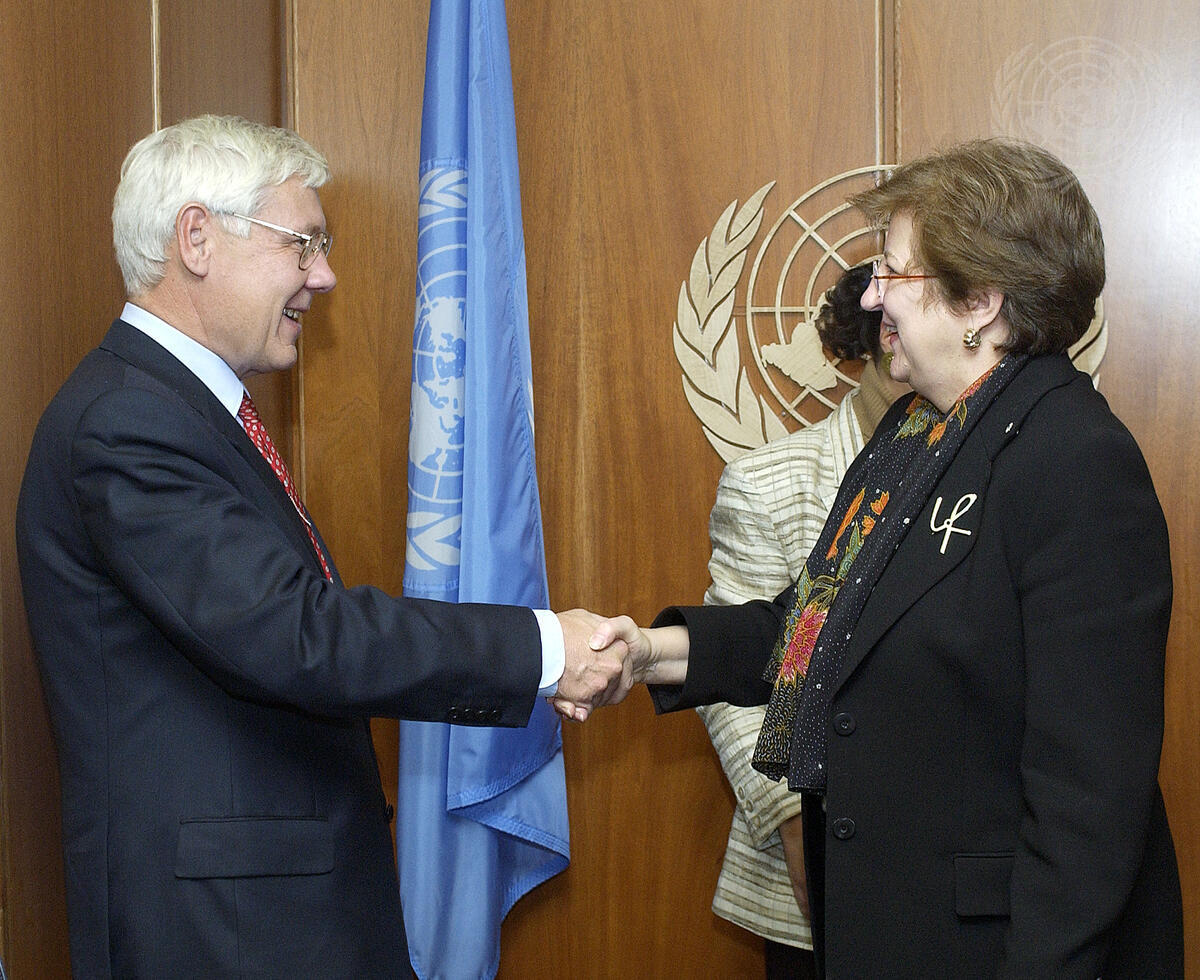 Deputy Secretary-General Louise Fréchette (right) meets with Antti Satuli, Secretary of State of Finland.