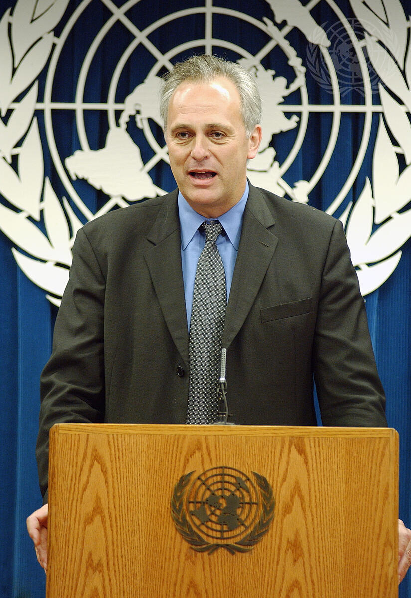 Mark Malloch Brown, Administrator of the United Nations Development Programme (UNDP), addresses correspondents during the Secretary-General's press conference today.